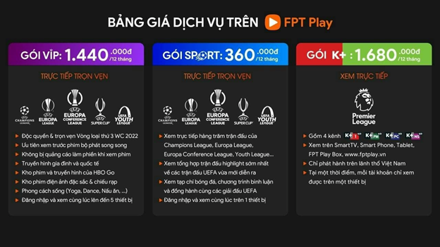 III. ĐĂNG KÝ GÓI SPORT VÀ GÓI VIP TRÊN FPT PLAY