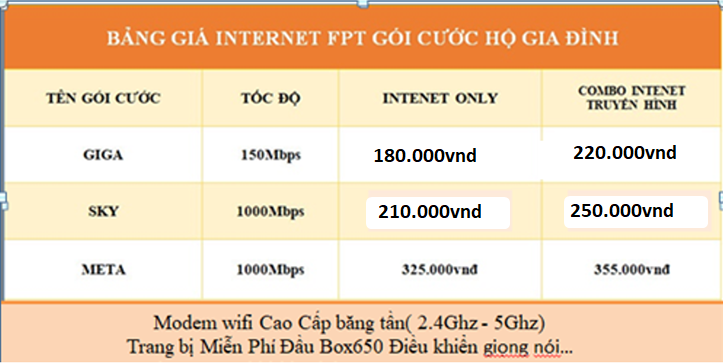 Bảng giá cước Internet và Truyền Hình FPT gói phổ thông